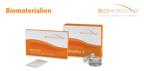 Mit den Knochenersatzmaterialien MinerOss® A, MinerOss® XP sowie MinerOss® X Granulat und Syringe, CeraOss HYA®, CeraOss®, SynMax® und den Kollagenmembranen Striate+ ™, Mem-Lok® RCM, Mem-Lok® Pliable, Argonaut™ sowie PermaPro™, einer synthetischen Membran, und der rekonstruktiven Gewebematrix NovoMatrix ™, setzen BioHorizons und Camlog Maßstäbe in der Hart- und Weichgeweberegeneration. Die Kollagen-Wundauflagen runden das Produktportfolio ab.
